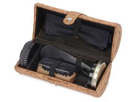 Набор для ухода за обувью из 5 предметов пригодится в деловых поездках. Компактный чехол с пробковым покрытием надежно застегивается и займет совсем не много места.